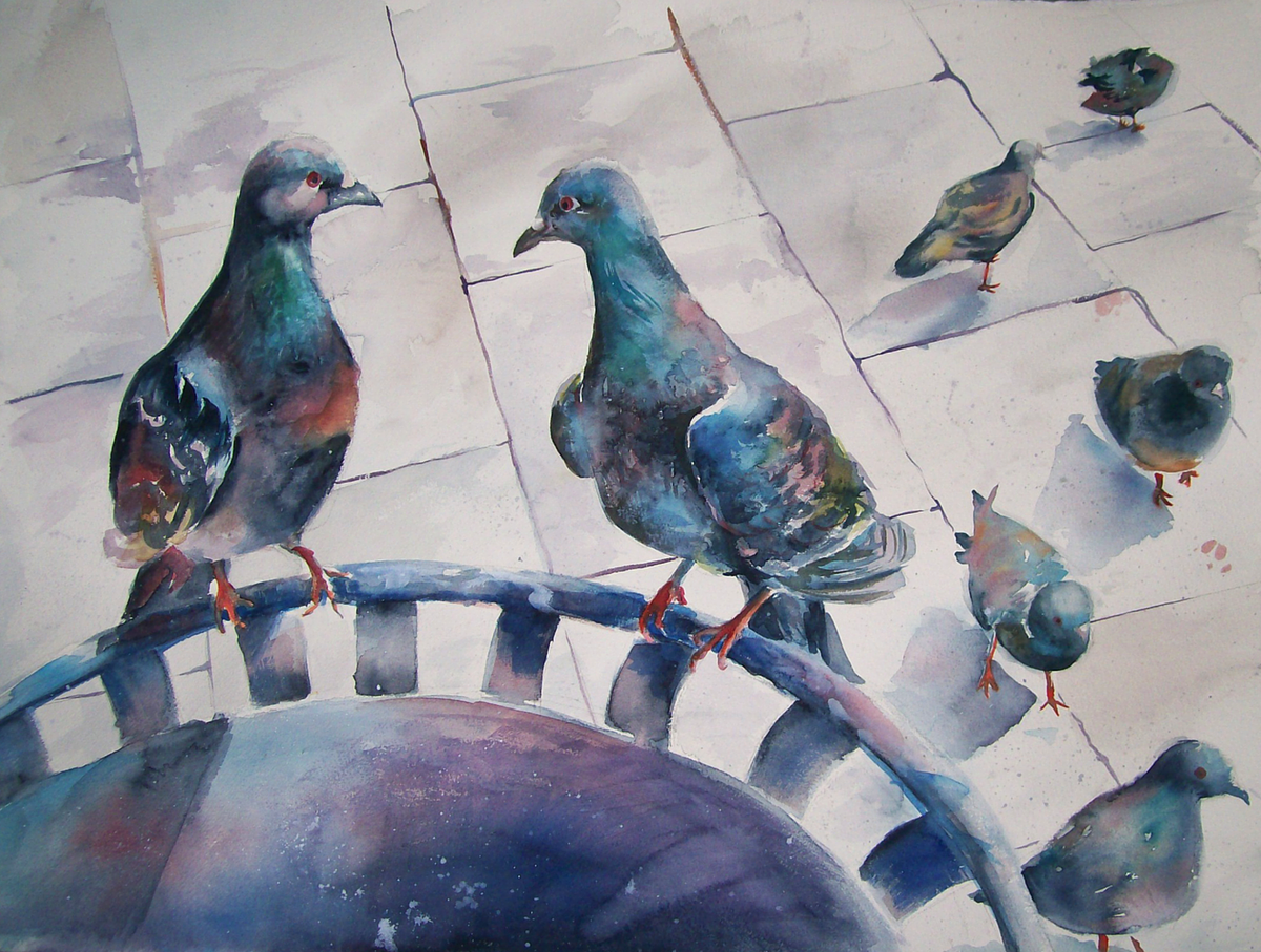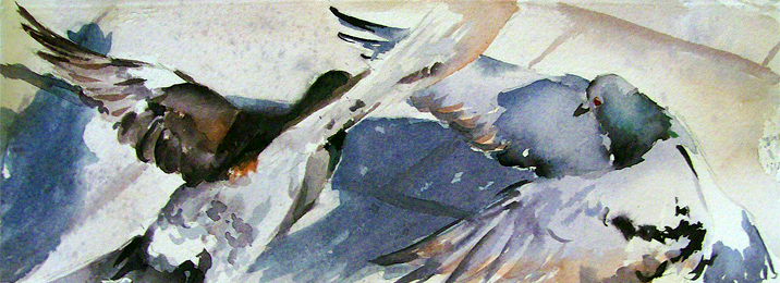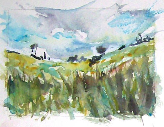 works with gesso, charcoal, and watercolor on paper. inspired by birds, insects, and people in the landscape of ireland.